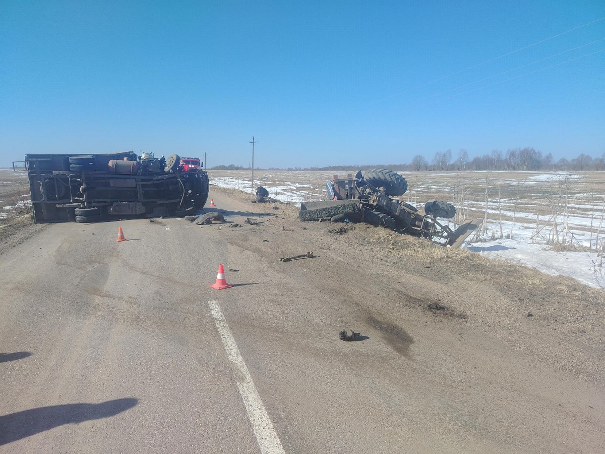 Первое ДТП случилось около 11:00 на 2-м километре автодороги «Ольша – Велиж – Усвяты – Невель – Аполье – Гор-Аполье» в Смоленском муниципальном округе. 22-летний водитель автомобиля ГАЗ-3009 не выдержал безопасную дистанцию до трактора МТ3-82.1 под управлением 49-летнего мужчины и совершил с ним столкновение. В результате водитель трактора и 44-летний пассажир ГАЗ-3009 получили телесные повреждения и были доставлены в медицинское учреждение.